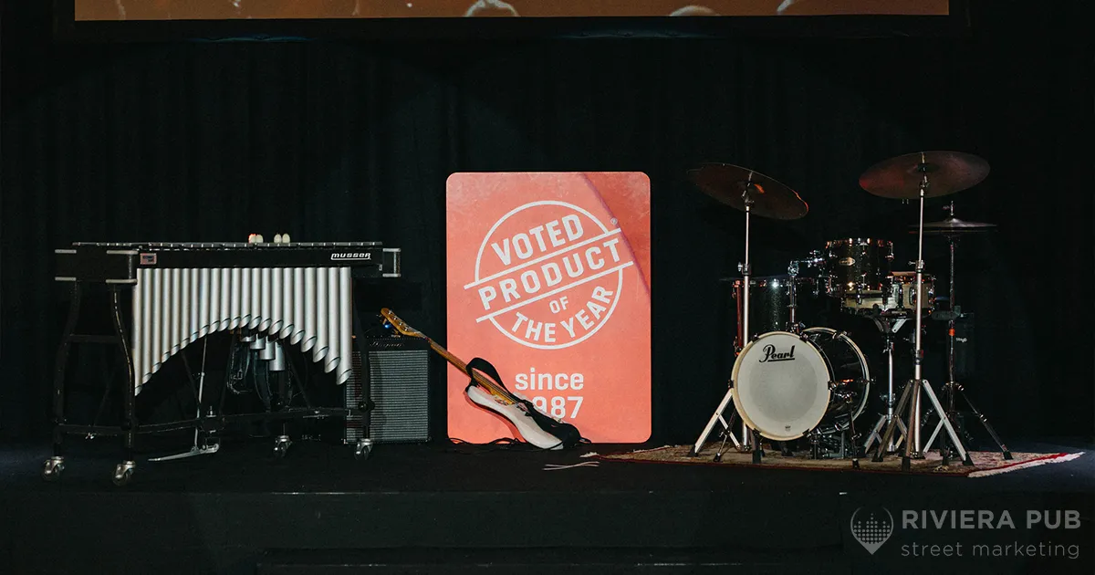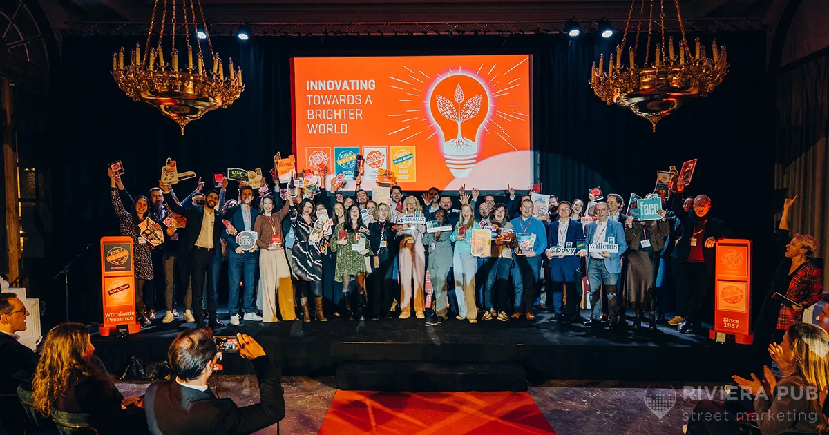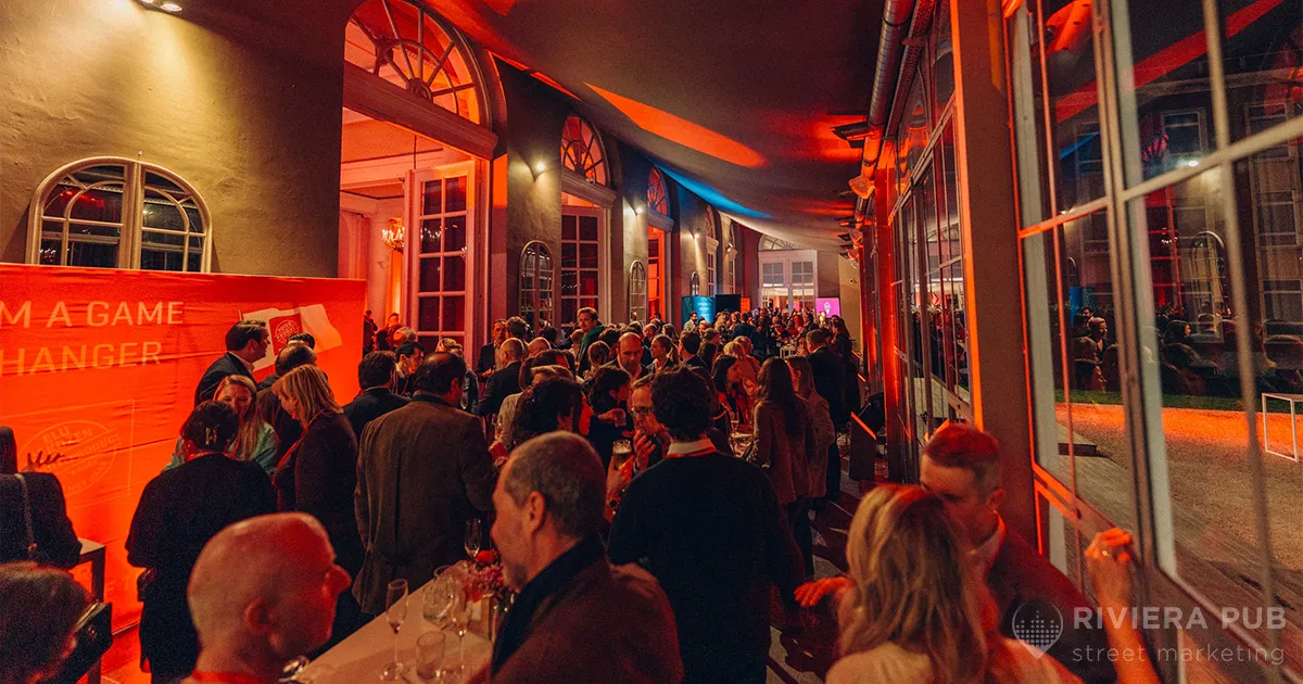 Le 18 février 2025, à l’occasion de la cérémonie des lauréats du label Élu Produit de l’Année Belgique, organisée dans le prestigieux Palais d’Afrique à Tervuren, près de Bruxelles, Riviera Pub a été choisie pour concevoir une animation directionnelle et artistique inédite : une performance de Sign Spinning au service de l’image du label.