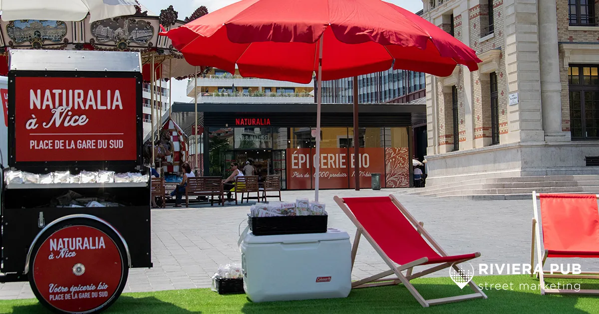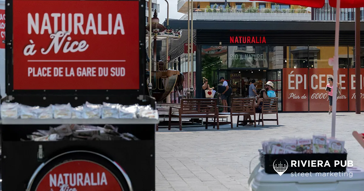 À l’occasion de l’ouverture de son nouveau point de vente à Nice Nord, au cœur du quartier dynamique de la Gare du Sud, Naturalia a confié à Riviera Pub la mise en place d’une opération de street marketing vitaminée et gourmande du 20 au 27 juillet 2019.