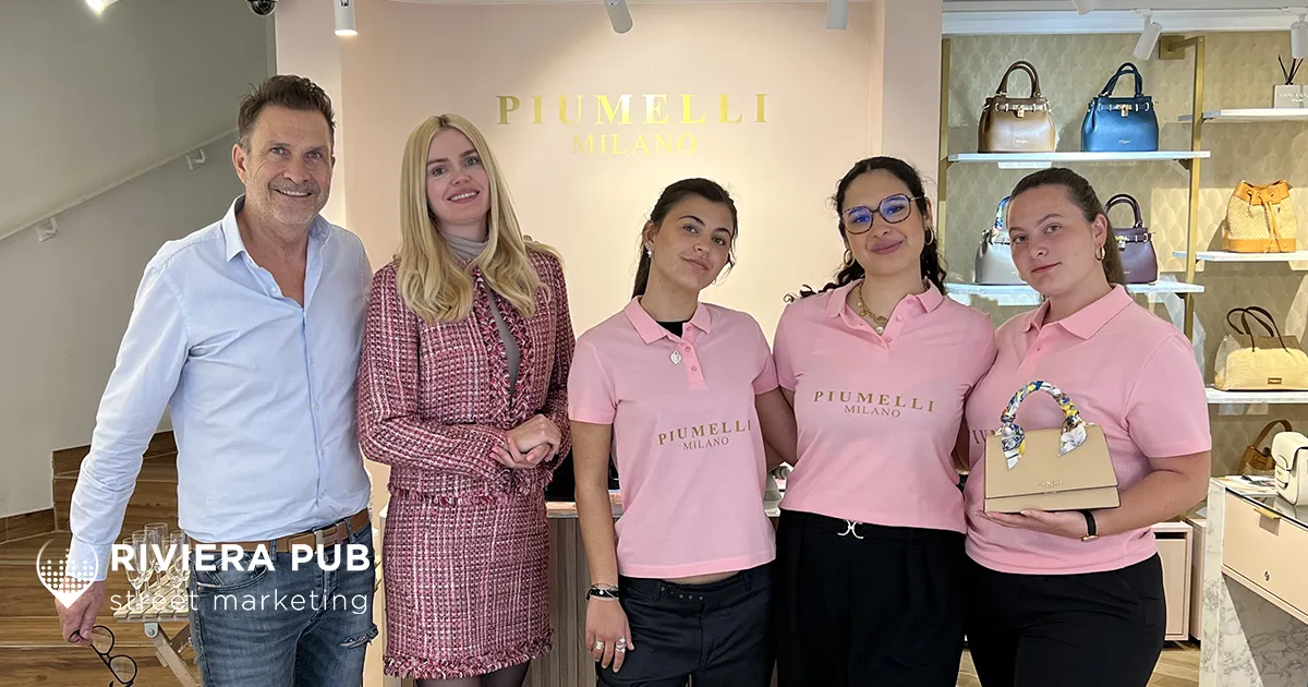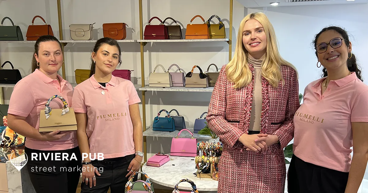 À l’occasion de l’ouverture de sa toute première boutique en France, la maison italienne Piumelli, réputée pour ses accessoires de mode en cuir haut de gamme, a fait appel à Riviera Pub pour orchestrer une opération de street marketing ciblée et élégante en plein cœur de Cannes, capitale azuréenne du shopping de luxe.